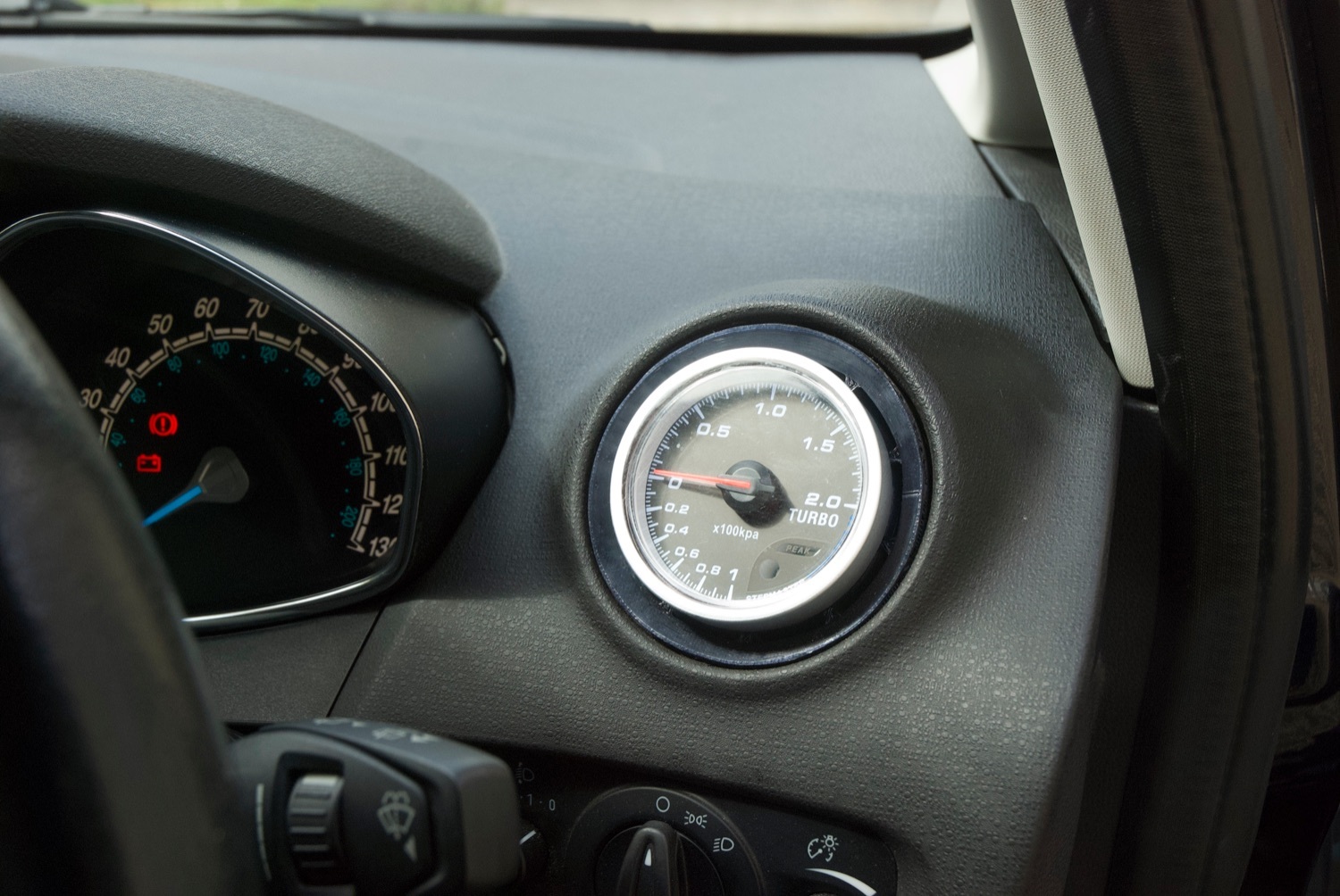 The interior of the car remains as standard apart from a turbo boost gauge that has been fitted in the air vent on the drivers side.