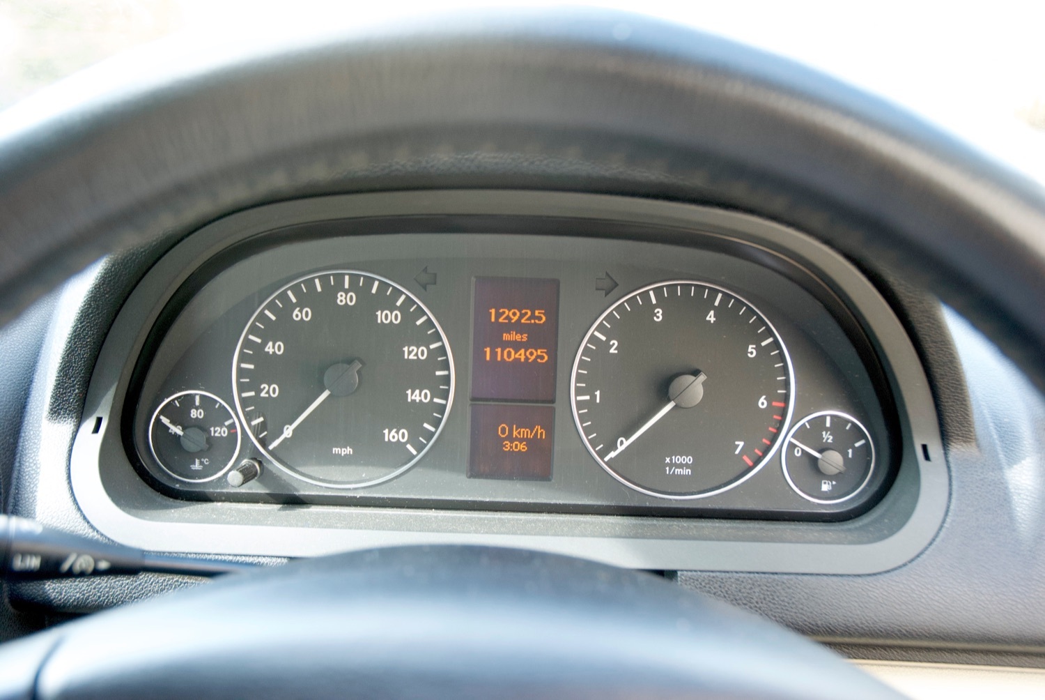 Moving to the inside and this little automatic car has a surprising amount of useable space given the upright driving stance. The seats are trimmed in Mercedes' excellent faux leather and are all in great condition. With remote steering controls and bluetooth for mobile connection, the sound system is excellent and the overall impression is of a quality small hatch.