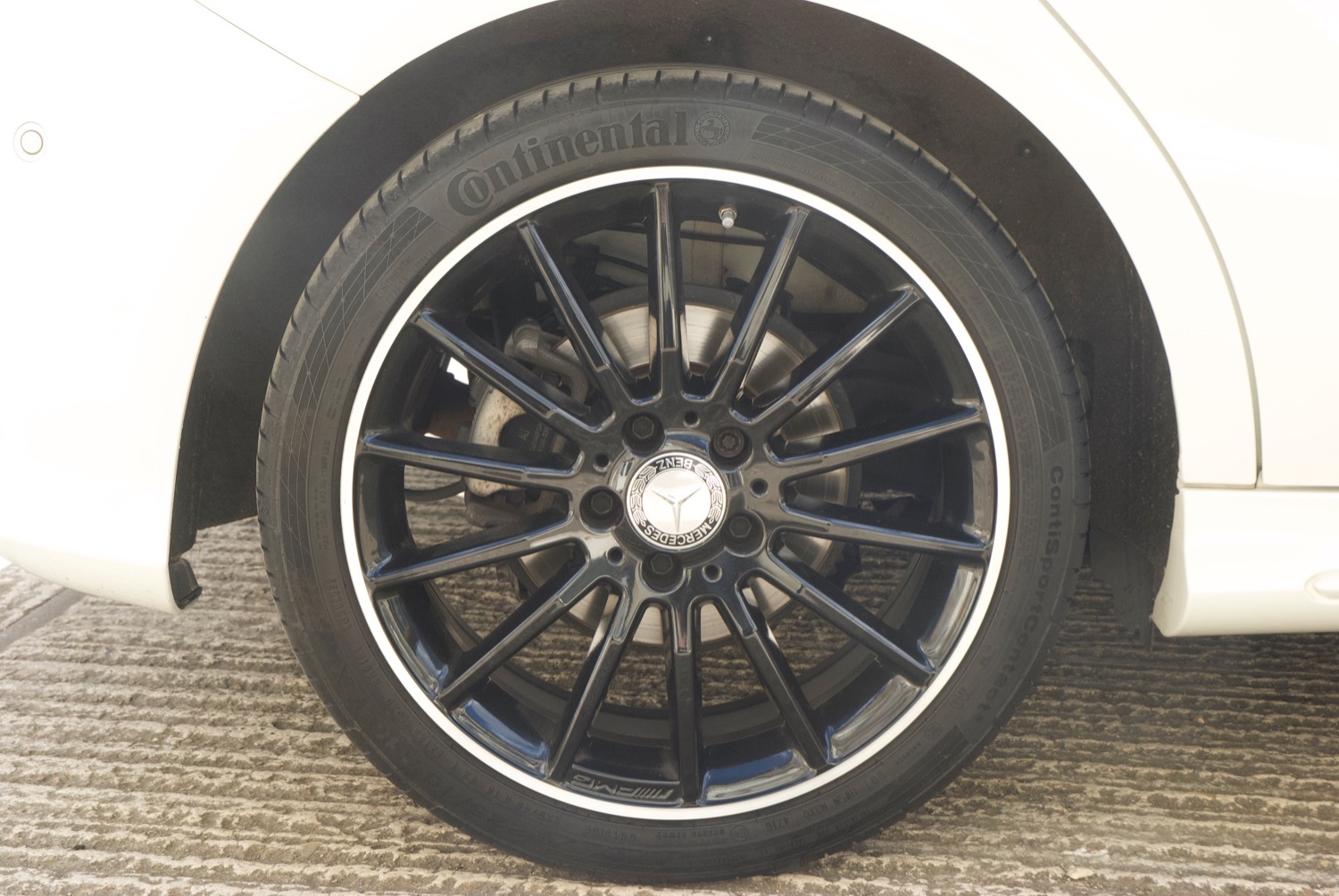 Finished in Calcite white with the full AMG body styling, and sitting on the 18 inch multi spoke black AMG wheels with polished rims, this is an impressive car. The bodywork shows only the most minor of stone chipping completely in line with its age and mileage, and the wheel rims have only minimal marks.