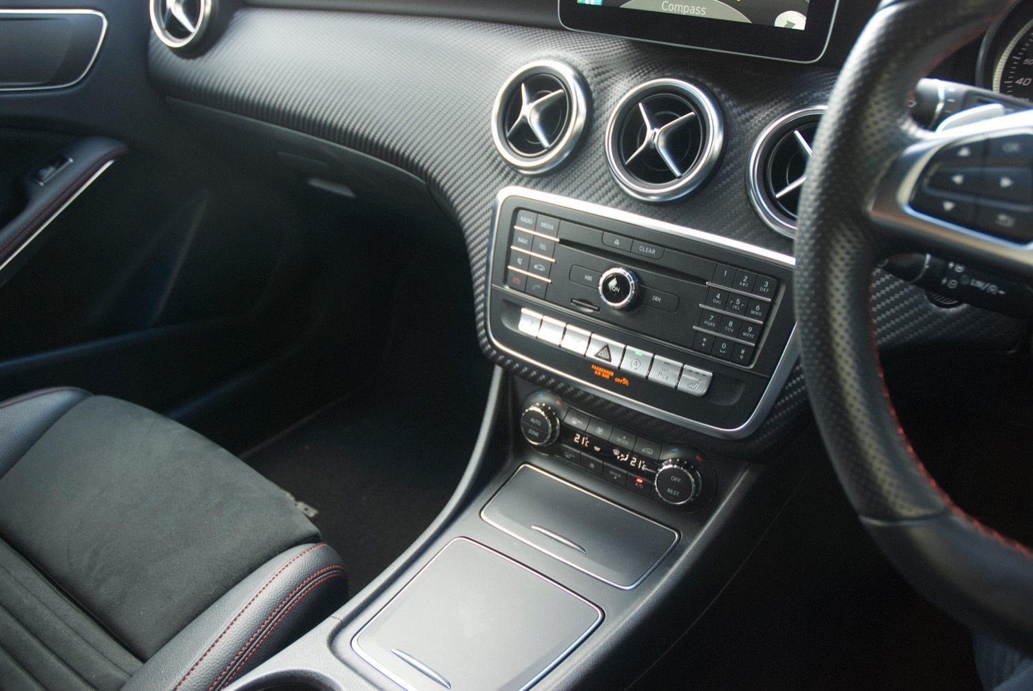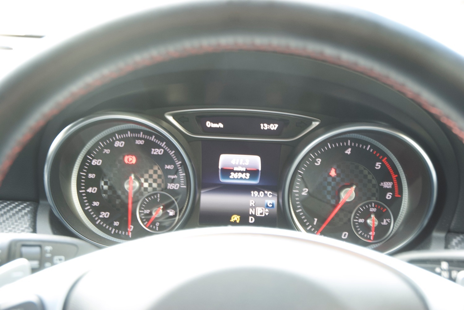 The car has the leather finished multi function sports steering wheel with paddle shift for the 7 speed DCT transmission. When you may not want to be so sporty, the car benefits from cruise control with the collision avoidance system including emergency stop; and of course has automatic air conditioning.